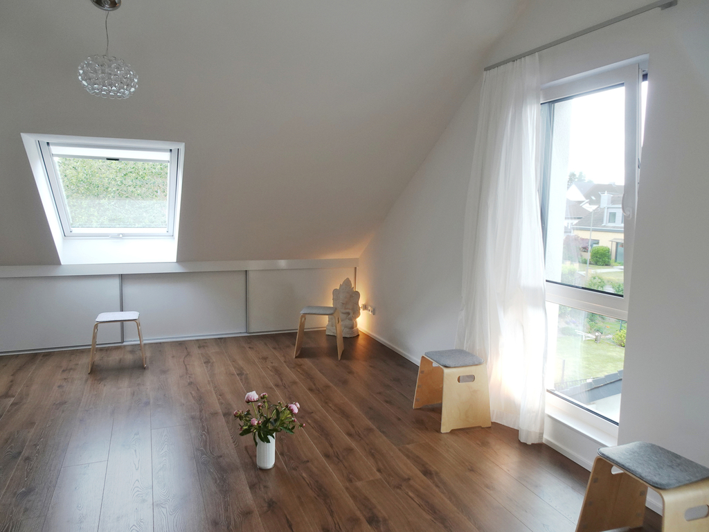 Drei große Fenster garantieren nicht nur eine ausreichende Lüftung, sondern auch einen wunderbaren Ausblick. Darüber hinaus verfügt der Raum über eine Klimatisierung, durch die Temperatur sowie Luftfeuchtigkeit reguliert und Bakterien und Viren mittels S-Plasma-Ionen-Technologie abgetötet werden.